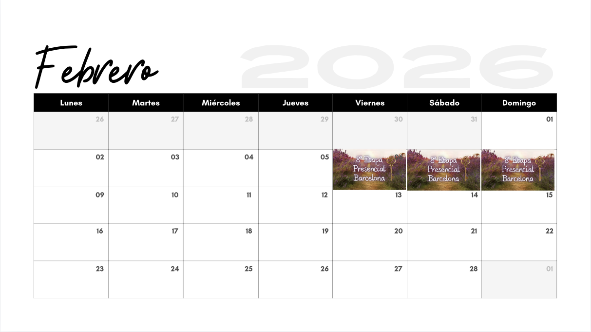 Etapa 8. Presencial. BARCELONA. Entrega de la 3ª Llave, (POSADAS 54-59) Febrero 6-7-8