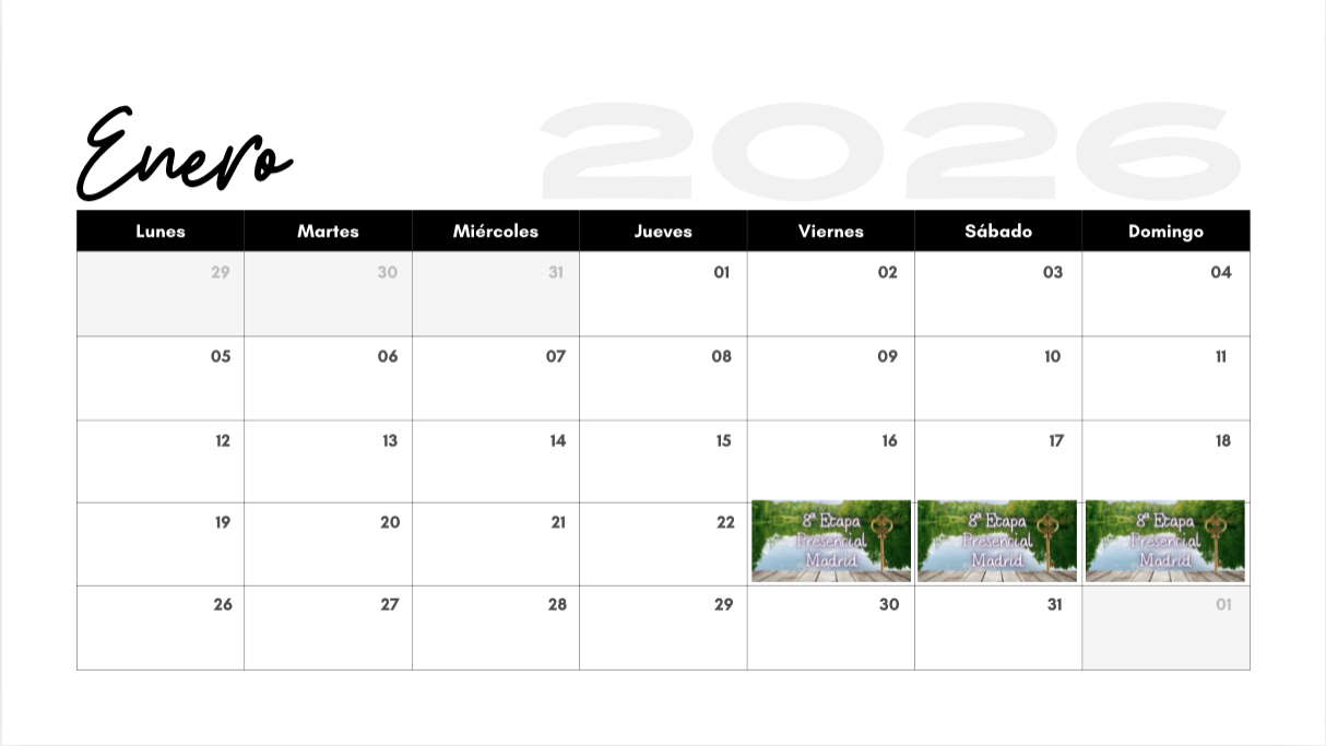 Etapa 8. Presencial. MADRID. Entrega de la 3ª Llave, (POSADAS 54-59) Enero 23-24-25